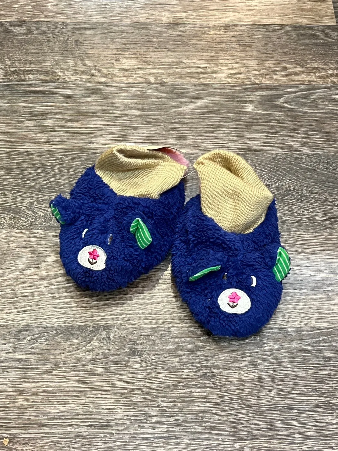 日本 兒童 藍色毛毛熊 襪子式 室內拖鞋 14-16cm