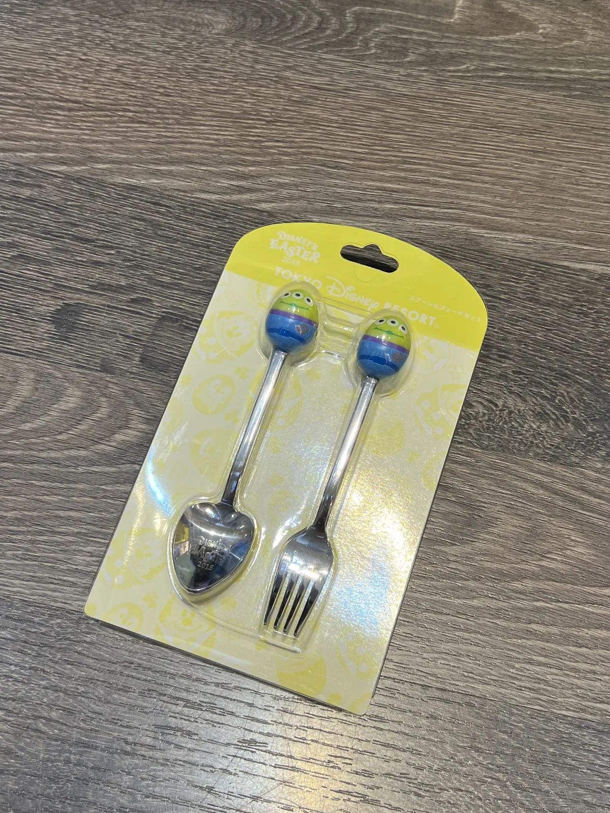 迪士尼 復活節蛋造型 三眼怪 湯匙+叉子組