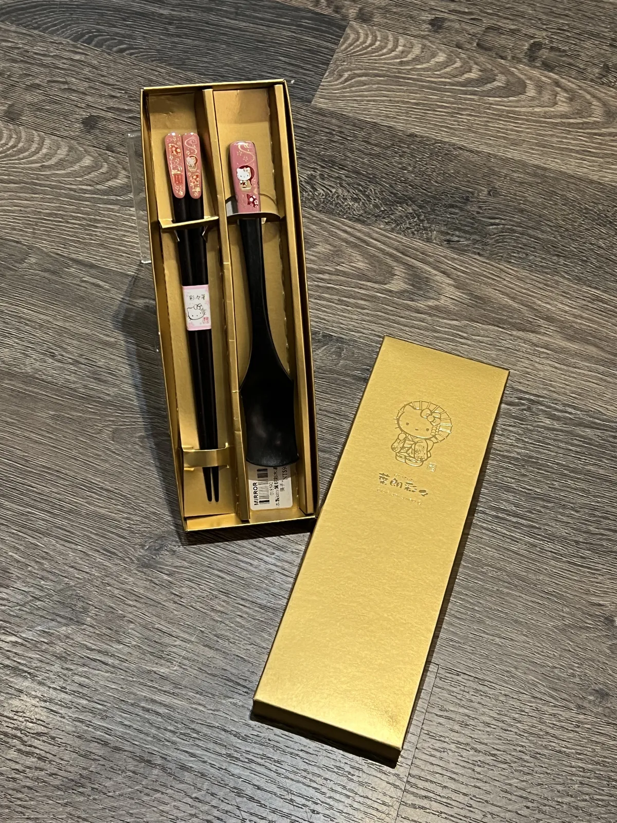 日本製Kitty 葉朗彩 木製筷子湯匙組