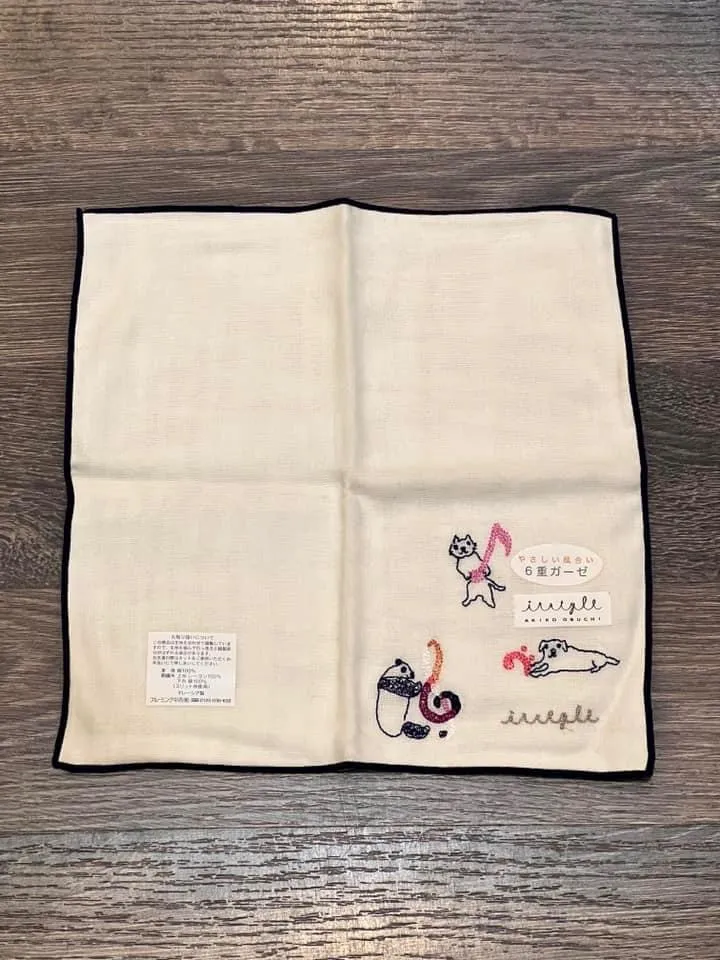AKIKO OBUCHI 米底藍邊 貓狗熊貓 方巾