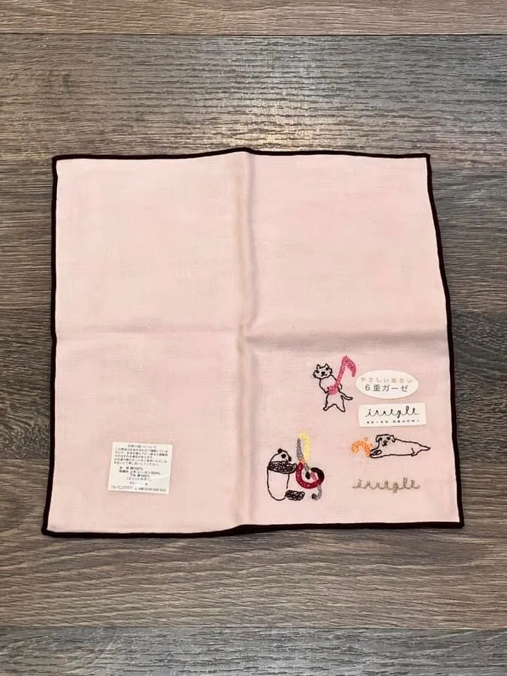 AKIKO OBUCHI 粉底咖邊 貓狗熊貓 方巾