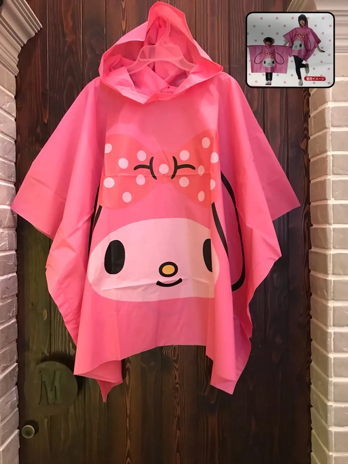日本 MELODY 造型 超輕便斗篷隨身雨衣 - 白 (110-185CM可用)
