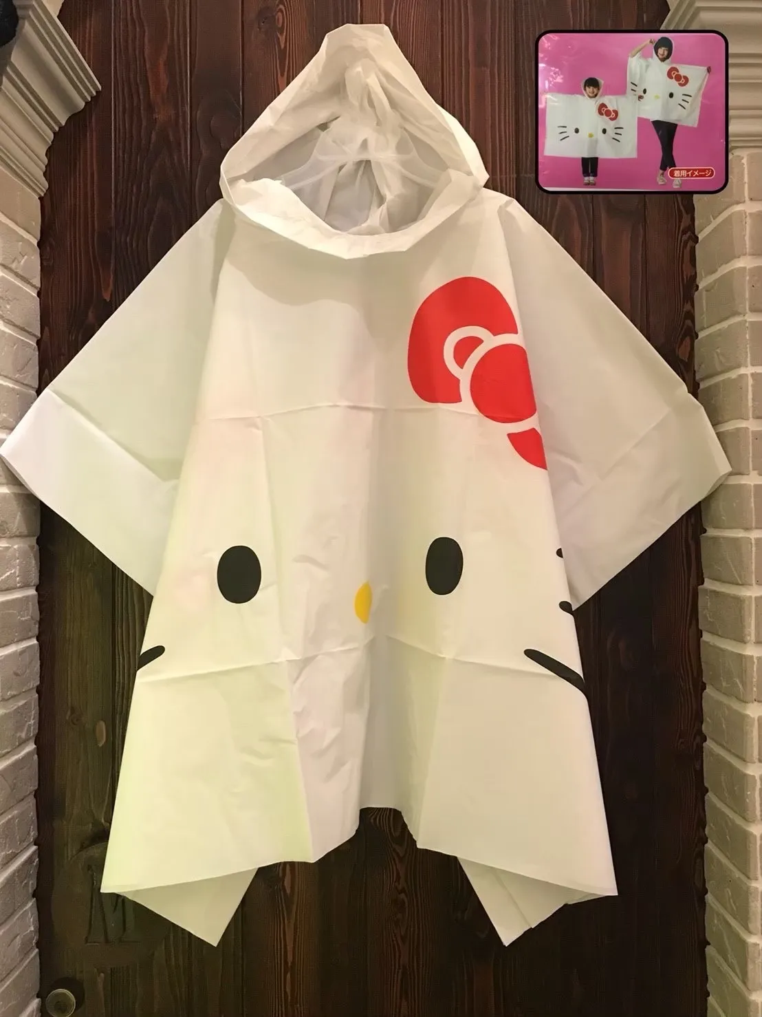 日本 KITTY 造型 超輕便斗篷隨身雨衣 - 白 (110-185CM可用)