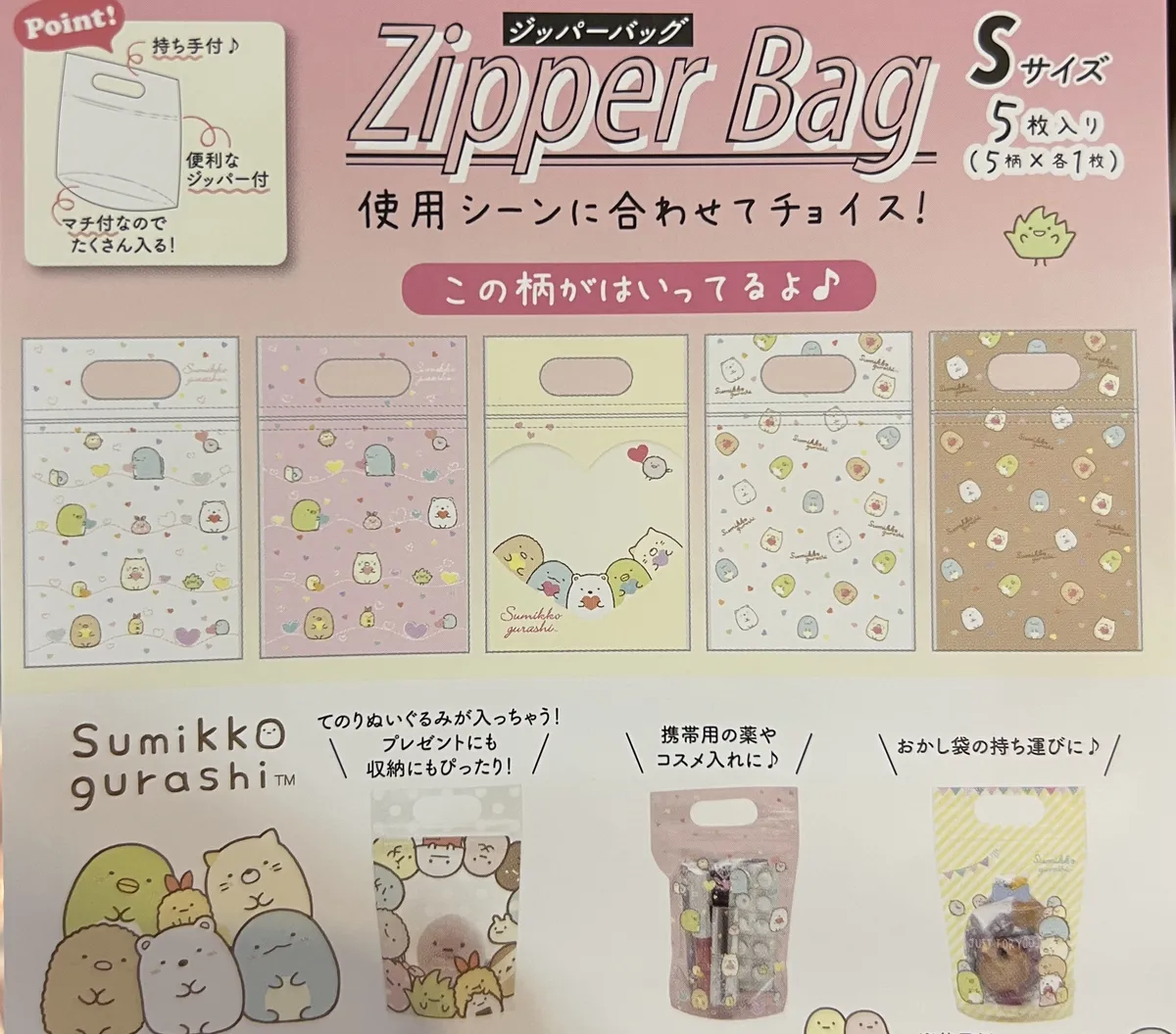 日本 角落生物 禮物夾鏈置物袋 小 粉 (5入)