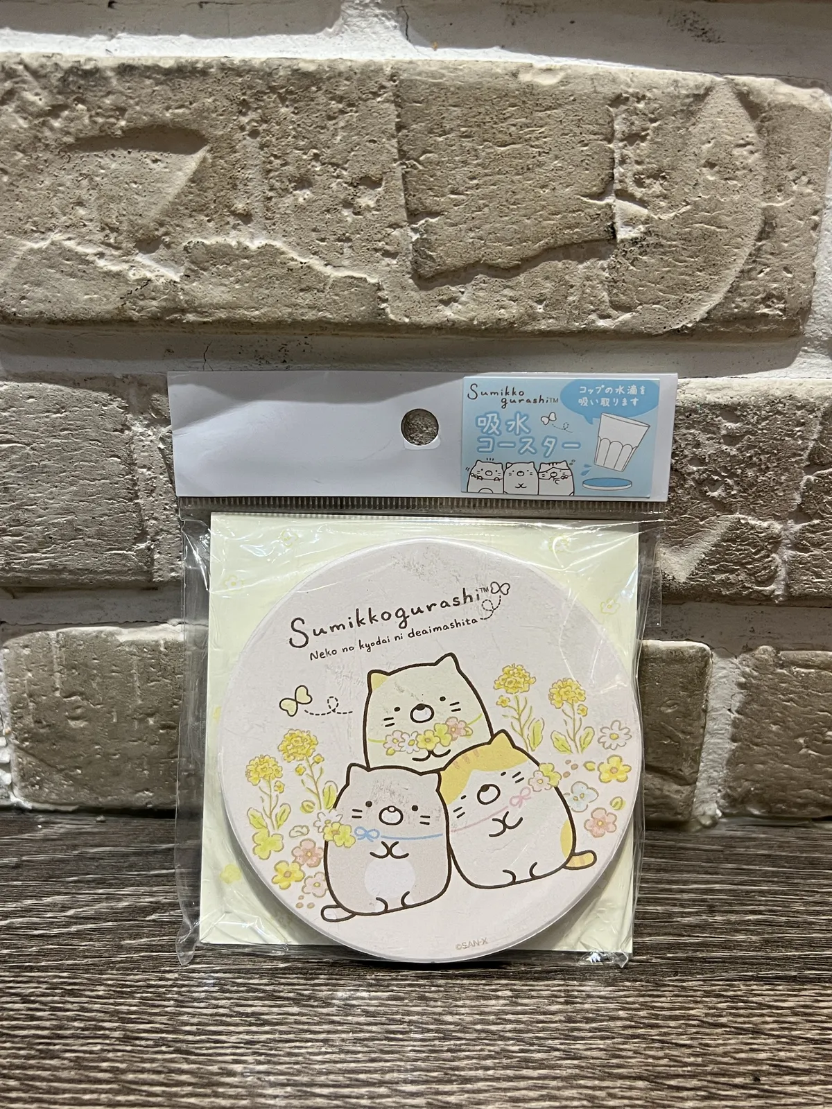 日本 角落生物 貓咪花朵 珪藻土 杯墊