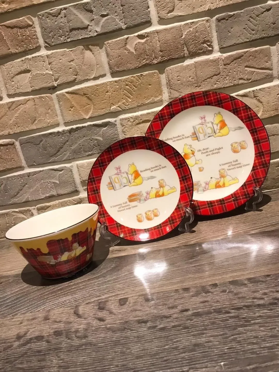 迪士尼維尼蜂蜜罐 紅格子邊 小瓷盤