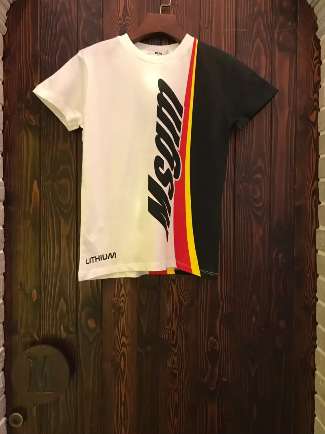 MSGM 白底黑黃紅賽車款短T-12-不二價