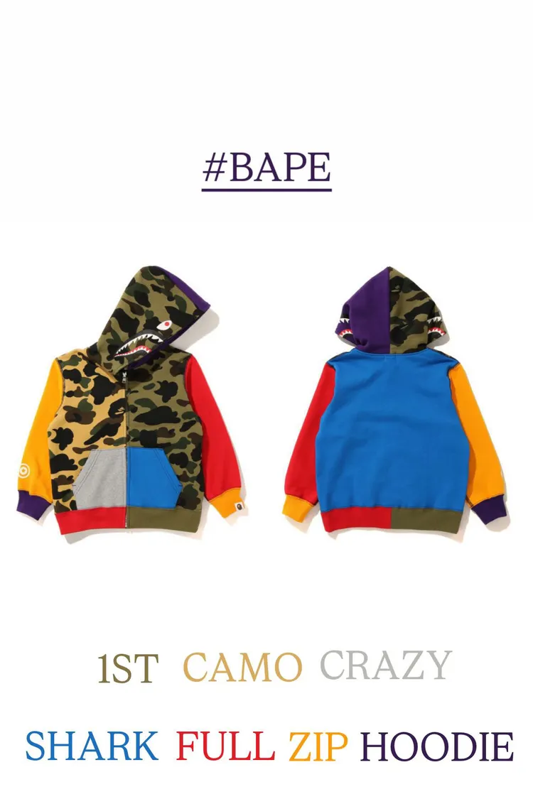 BAPE 瘋狂迷彩鯊連帽外套-M-不二價