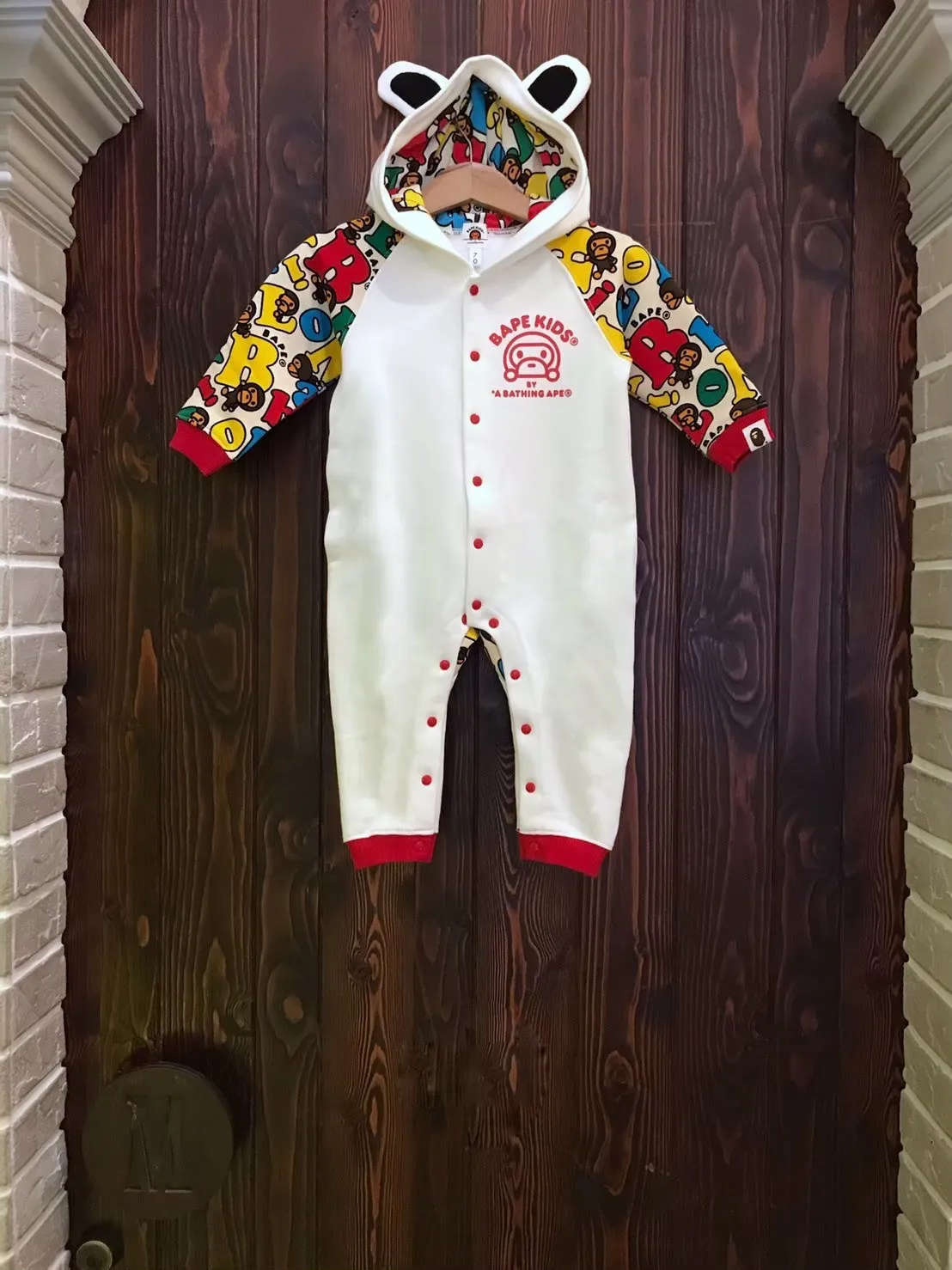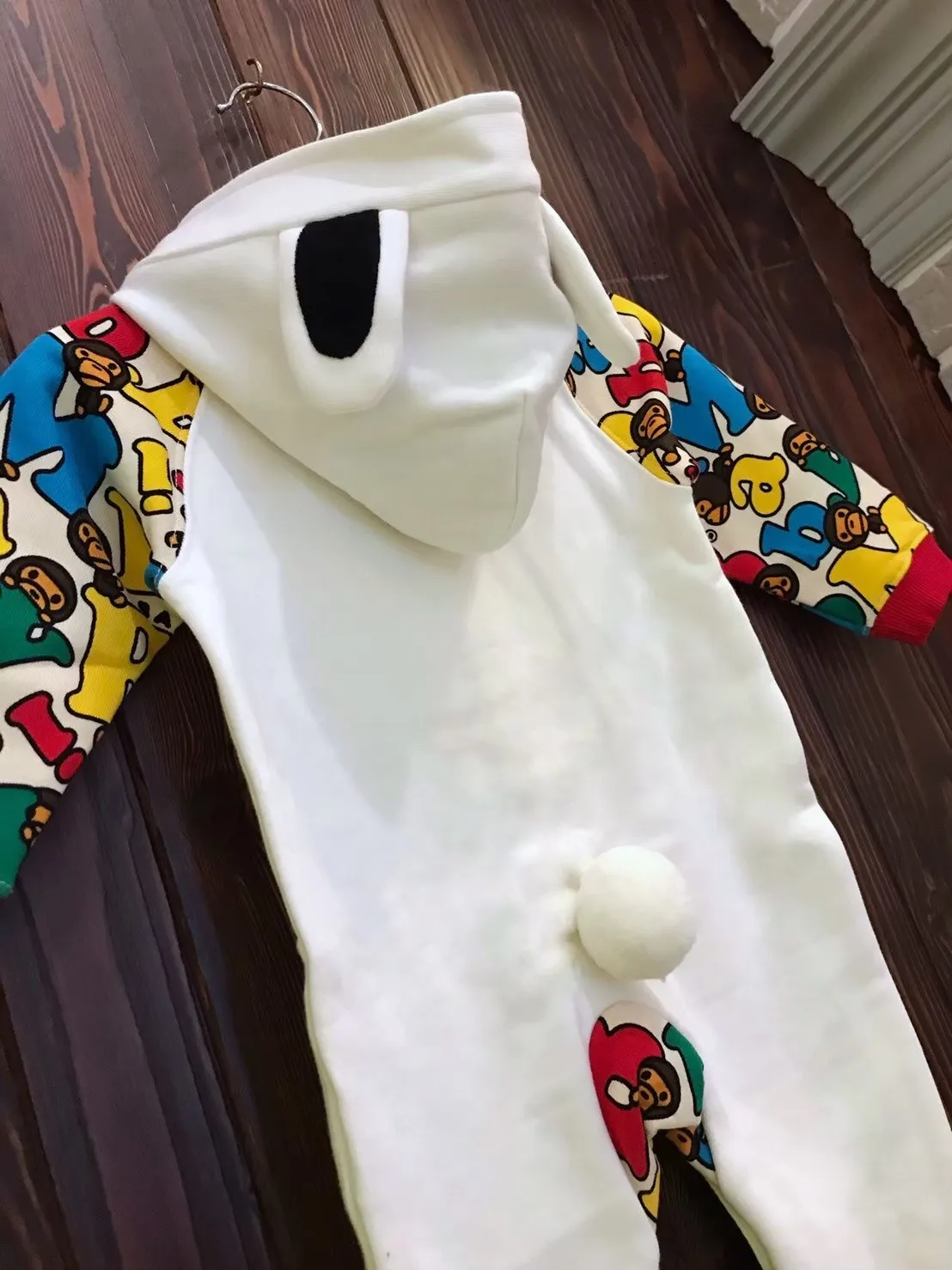 BAPE彩色猴BABY白底連帽兔裝-70-不二價