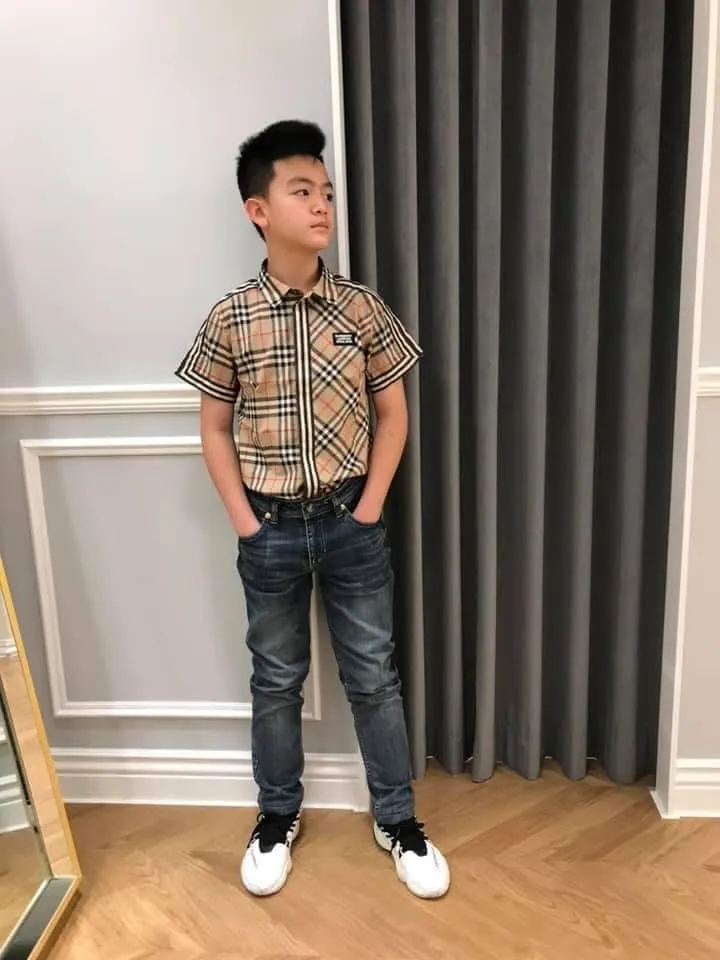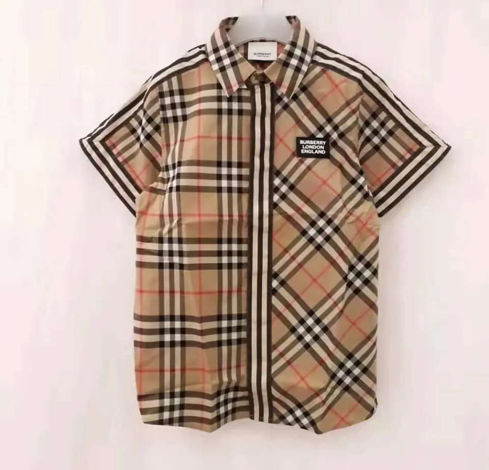 BURBERRY 卡其格紋短袖襯衫-10A-不二價