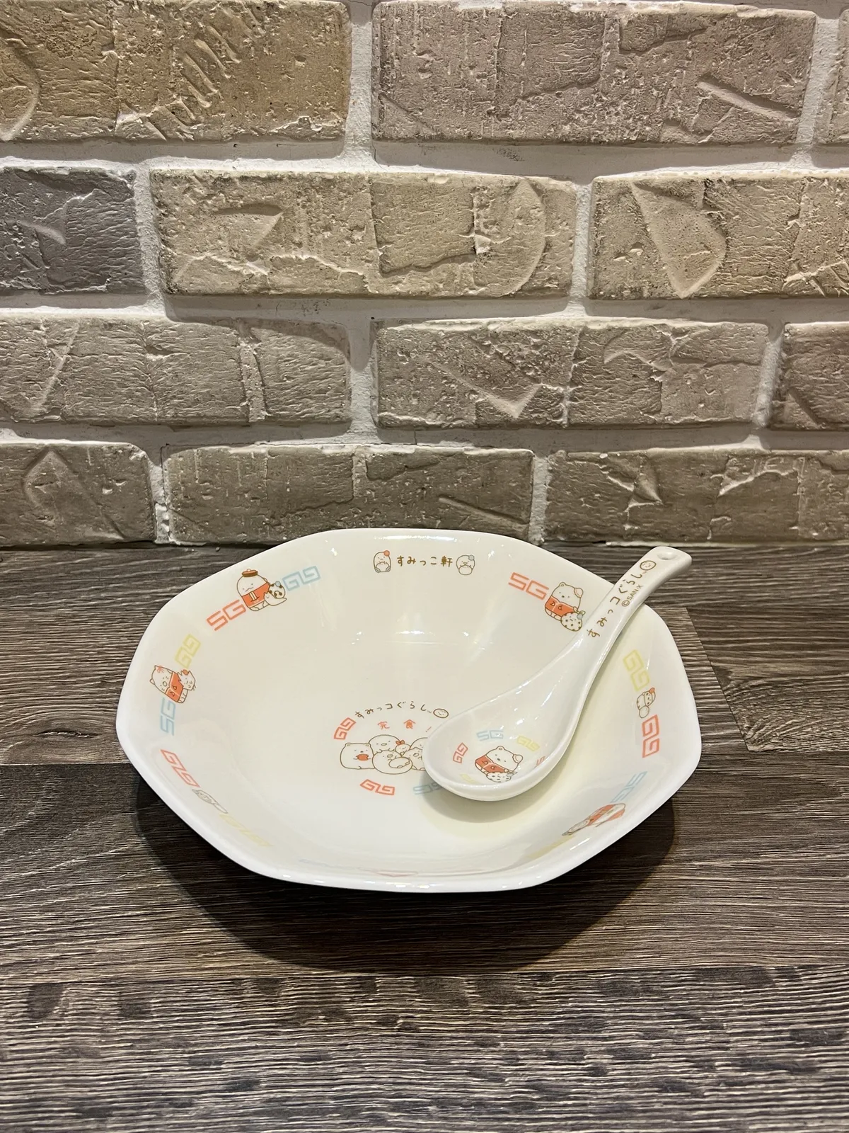 日本 角落生物 中餐廳圖案 瓷盤碗+瓷湯匙組