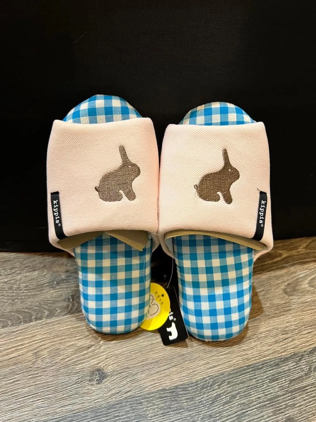 日本 兒童 粉底兔子 藍色格子 魚口 室內拖鞋 21-23cm