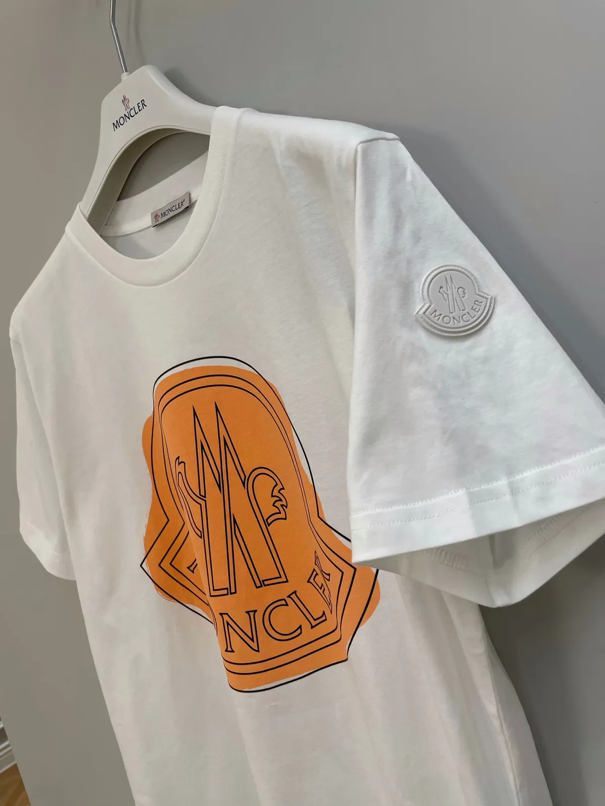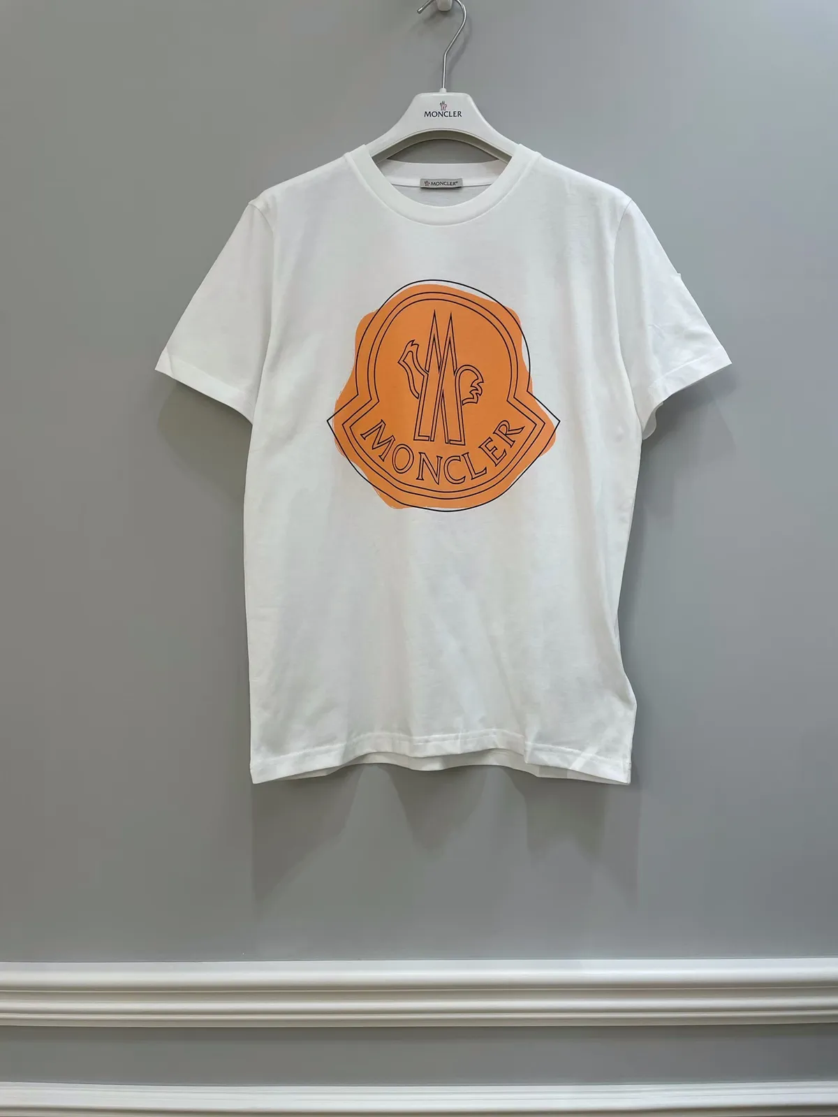 MONCLER 白底橘LOGO短T-10A-不二價