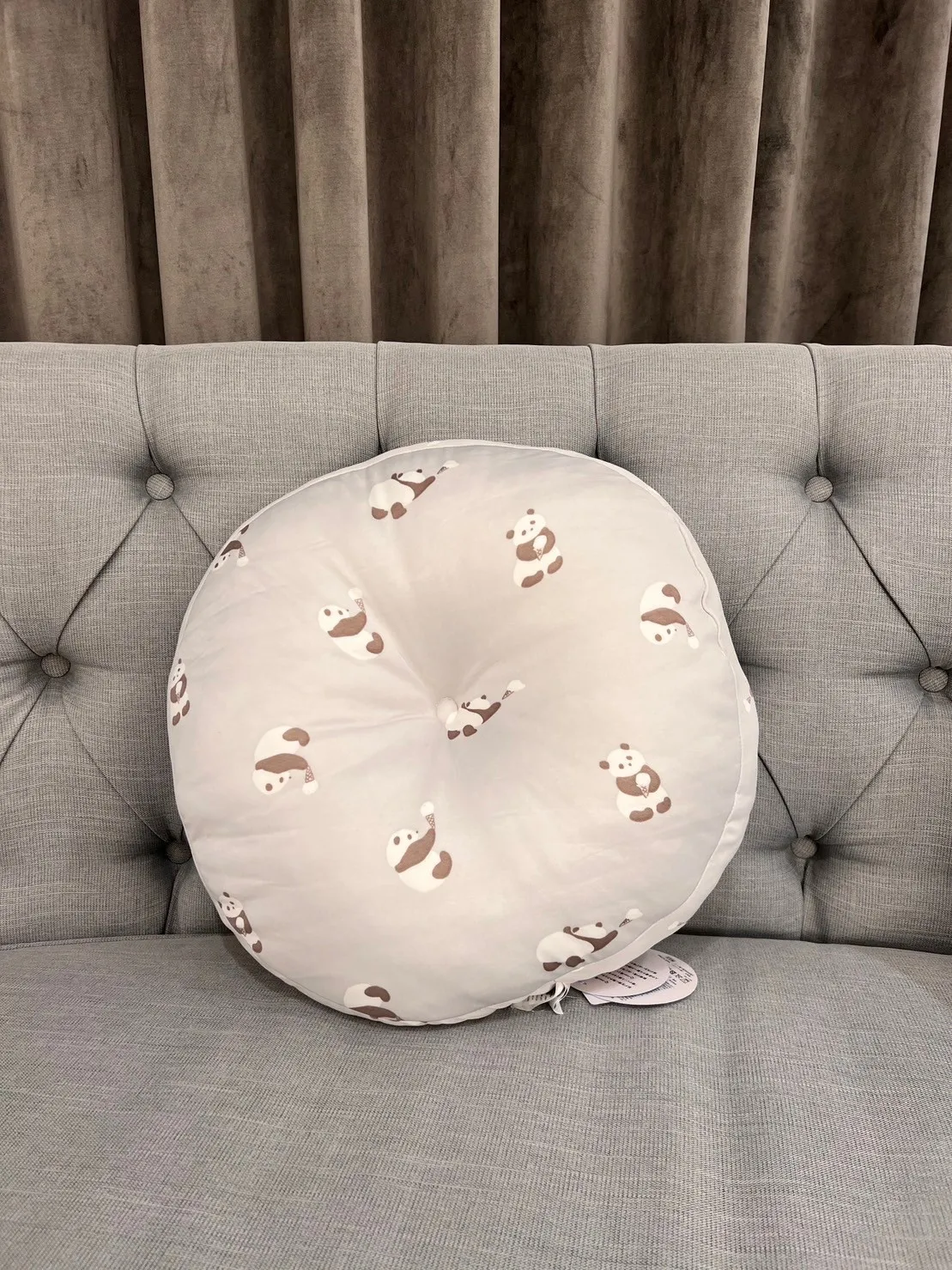 日本 FRESCO 涼感 圓形坐墊 淺灰熊貓