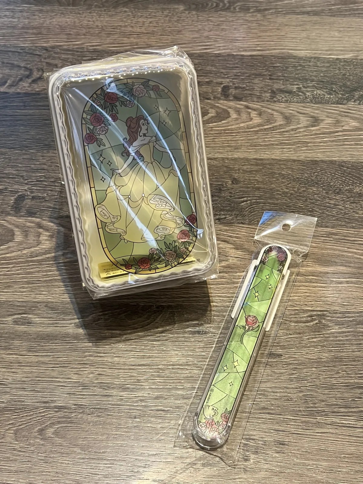 日本製 美女與野獸 彩繪玻璃 筷子+盒