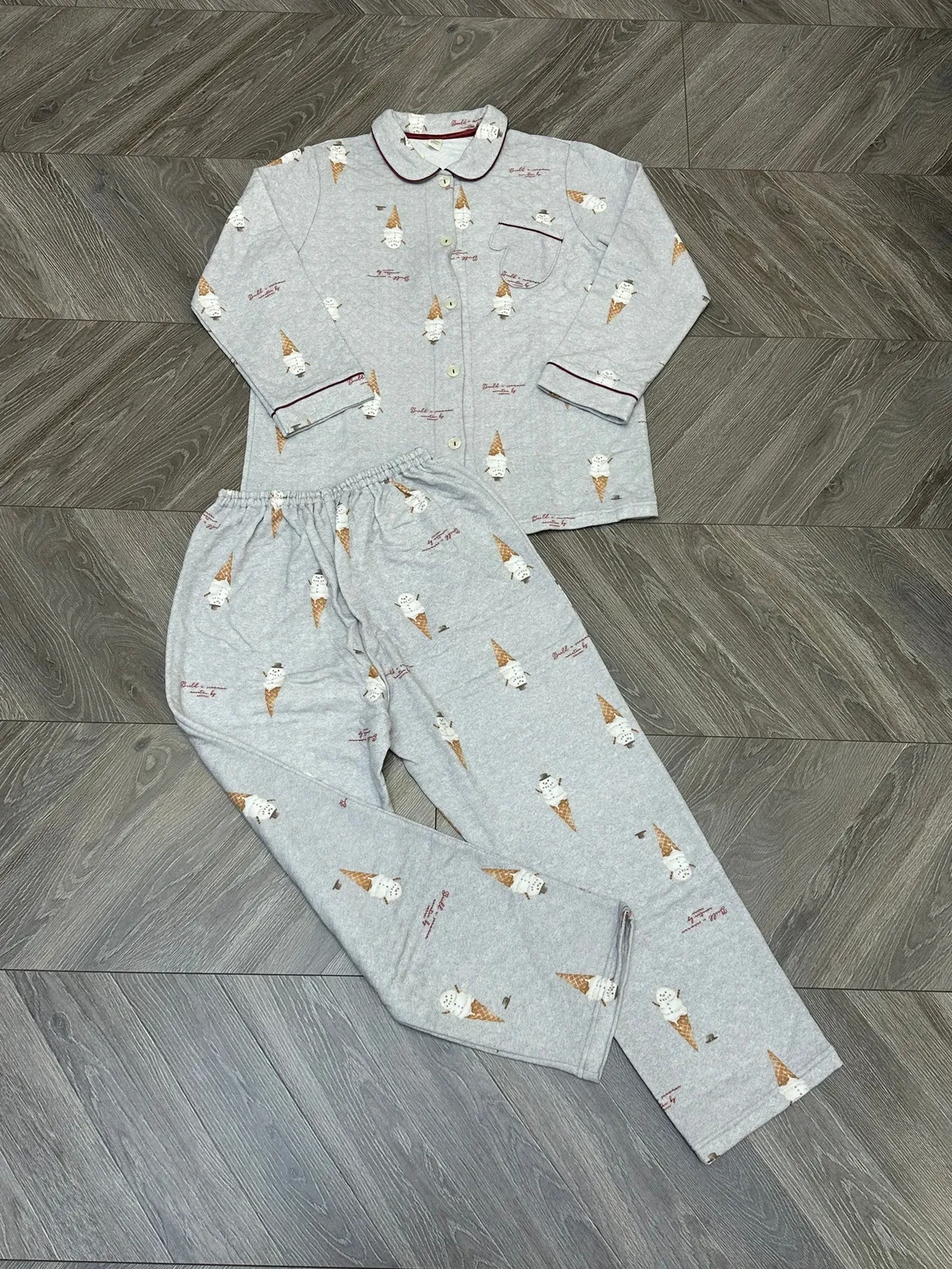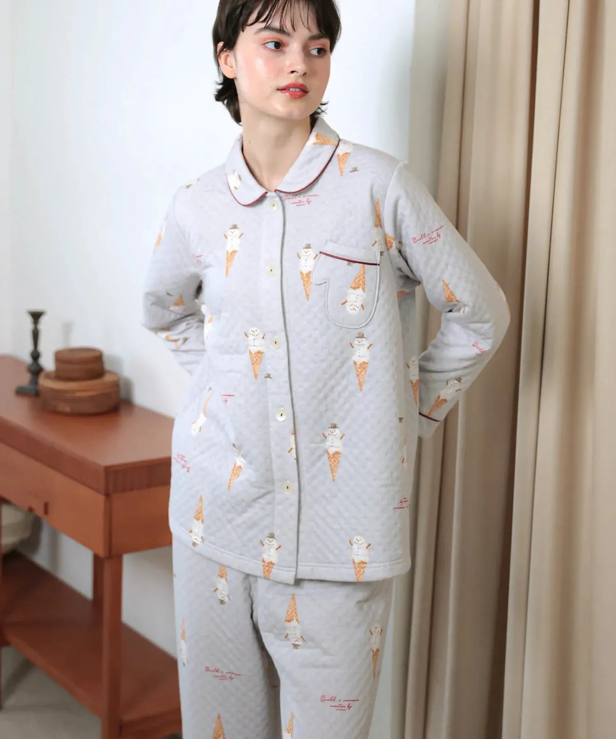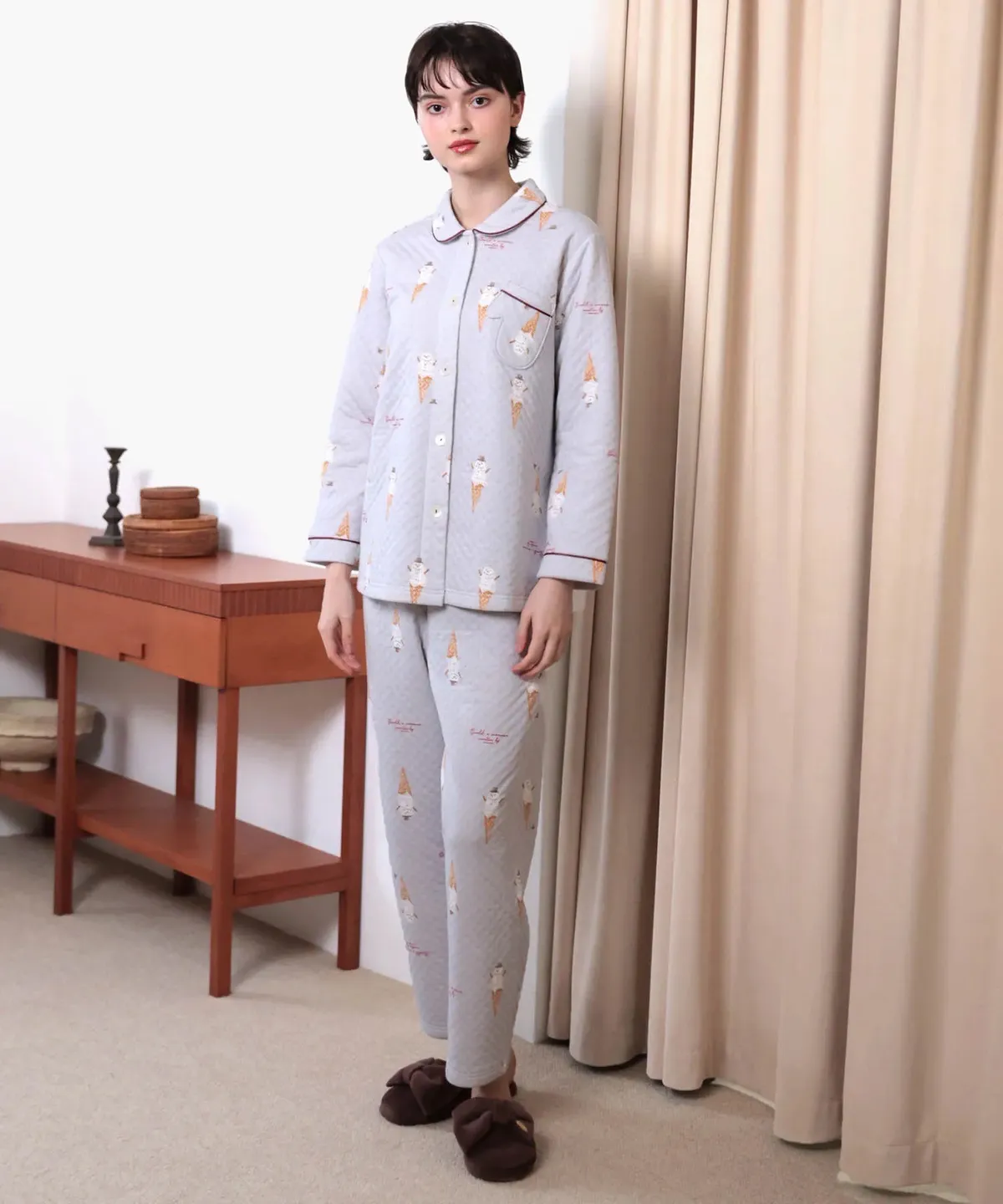 日本Narue雪人冰淇淋長袖+長褲粉家居服