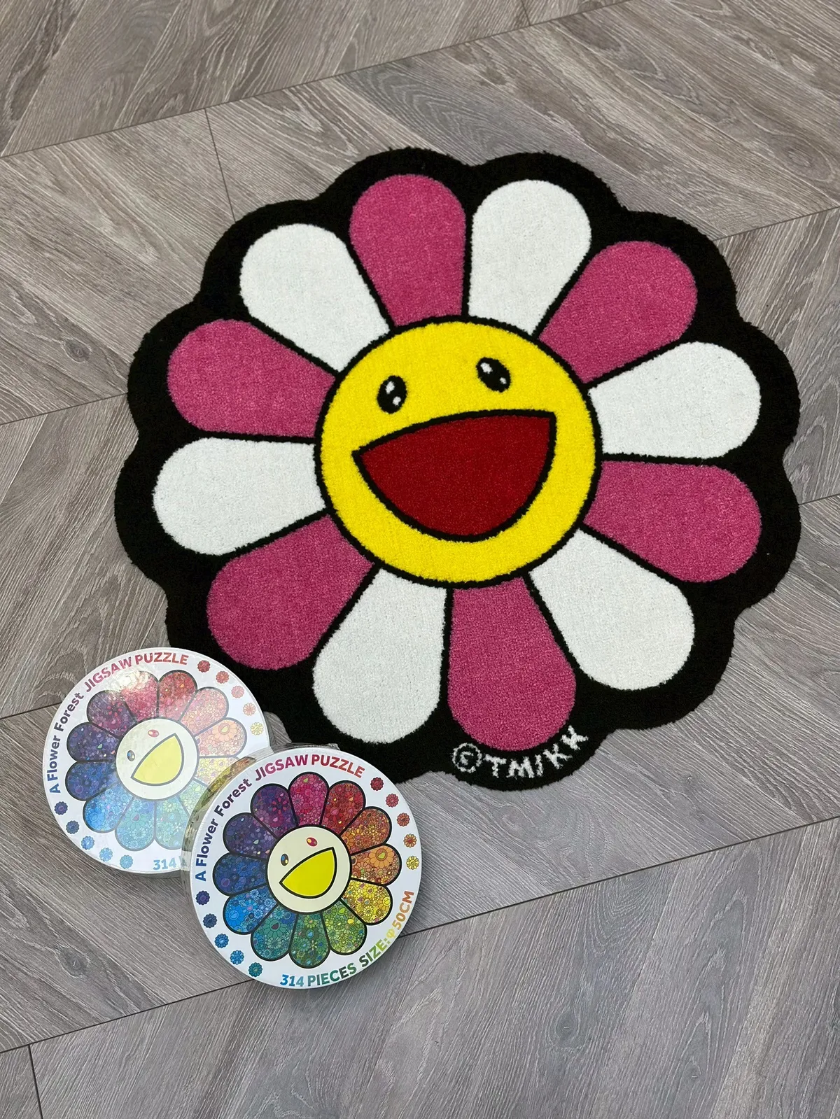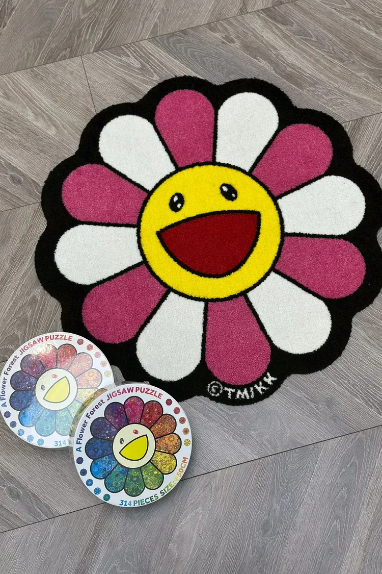 村上隆粉白太陽花止滑地墊-不二價70*70